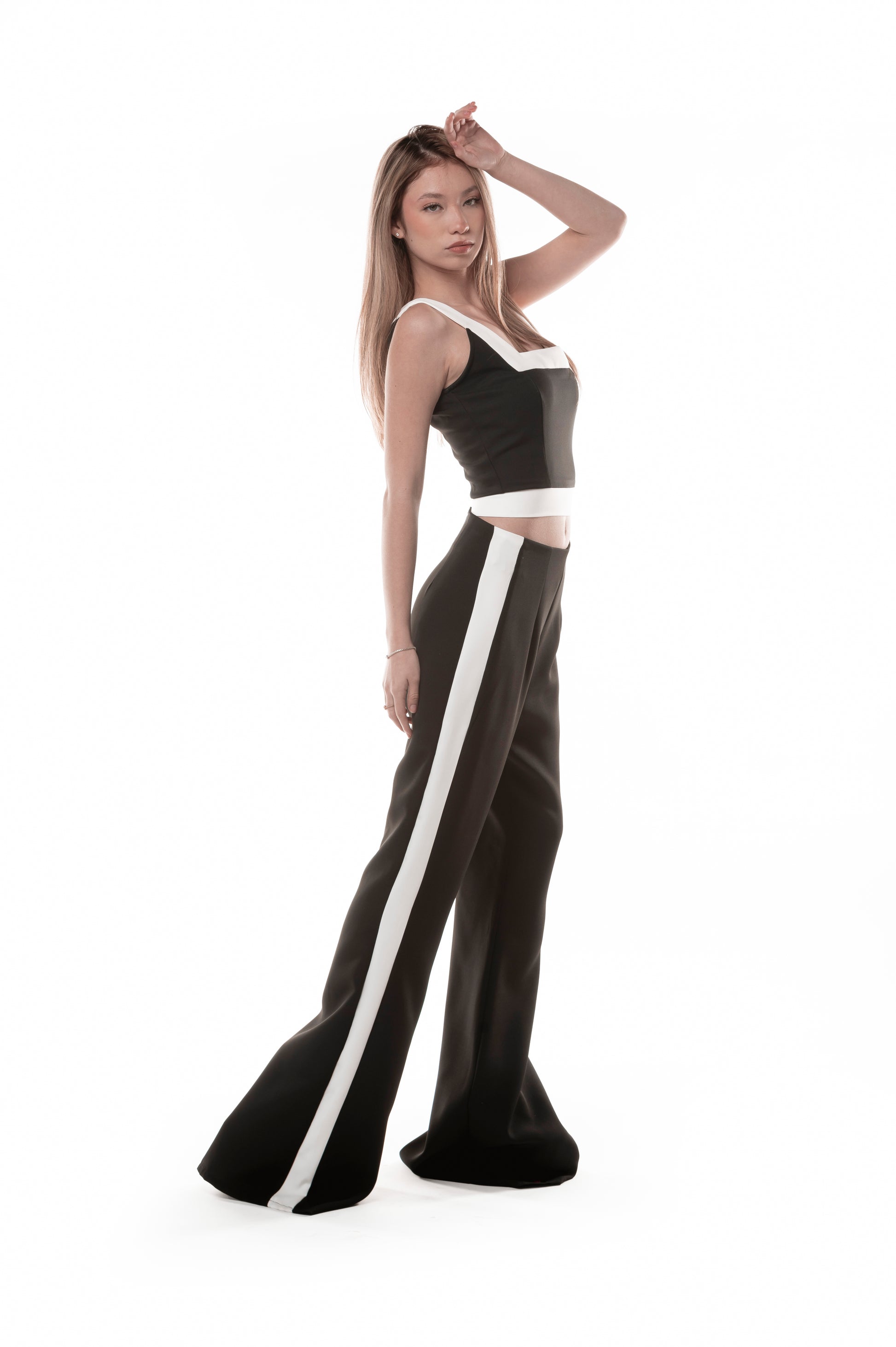 NUESTRO BACIPANTALON TIENE EL MISMO CORTE QUE EL PANTALON FAVORITO BASICO Y TIENE UN TOQUE DE TENDENCIA BICOLOR, ES PERFECTO PARA ELEVAR TU OUTFIT